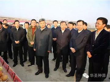 11月13日,省委常委、延安市委书记徐新荣一行60余人在宝鸡市副市长王宁刚的陪同下到华圣千阳苗木繁育基地参观调研。 华圣果业公司总经理曹继华热情接待了参观团。基地负责人详细介绍了华圣果业公司在宝鸡千阳的投资发展情况,从组培脱毒、砧木原种、品种引进、母株压条、分枝大苗培育到大苗建园等重要环节。同时强调了苹果转型升级以无病毒分枝大苗生产为抓手,矮化密植栽培技术模式是方向的发展趋势。让所有人充分了解到“亿万苹果产业,从一棵好苗开始”的深刻含义。选种优质苗木,宽行密植,机械应用,省工管理是现代果业发展必须掌握的基本要素。 随后,徐书记一行参观了公司苗木繁育圃、品种展示园,观摩了公司引进的先进苗木机械设备。还品尝了公司展示的魔笛、富金、巴克艾等苹果新品种。 参观过程中,徐书记对我司在矮化自根砧苹果栽培模式上和苹果新品种的推广工作上取得的成绩给予高度评价,希望公司不断发展壮大,在果品行业中永远竖起“华圣”这个标杆,在苹果产业转型升级中发挥更大作用。 华圣公司与延安各地区有着密切的联系,华圣公司的产业发展、品牌建设、企业成长与延安市各级政府,广大果农有着密切的关系。 此次调研的领导还有:延安市委副书记、代市长薛占海,副市长张宏、省果业局局长高武斌以及各县区县委书记、县长等人。