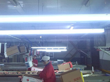 2014新果季来临之际,华圣果业工厂立足公司照明设施现状,本着高效、节能、环保的要求,组织人员对分选车间及气调库房的照明设施集中进行了改造,达到了预期效果。 项目改造后,库房照明比改造前节能75%,分选车间照明比改造前节能77.5%,在不降低照明质量的前提下,预计在1年内即可收回改造投入的全部费用。另外,此次使用的照明灯寿命长、启动快速、即开即亮的特点,极大方便了日常操作,提高了工作效率;而且该灯光衰慢,色温变化小,即改善了员工的工作环境,更便于分选工严格把控质量标准,为产品质量的稳定提供了有力保障。