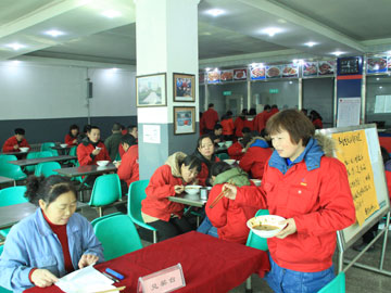 2014年12月22日是传统节气——冬至,为了让大家吃到可口的水饺,餐厅提前包制了各种各样的水饺。冬至当天,为活跃员工就餐气氛,行政部协同工会为大家准备了精美的礼品,把10个象征着好运的红枣分别包制在十个水饺中,十名吃到包有红枣水饺的员工幸运中奖,他们兴高采烈地领到一个不锈钢双层蒸锅。 冬至预示着寒冷到来,虽然外面是零下三度,但是餐厅里面却洋溢着热闹祥和的气氛,此时此刻,一个个小小的水饺为员工们带来欢乐笑语。