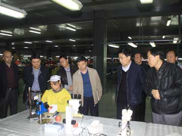 2013年7月17日下午,陕西省农业厅白宜勤厅长一行来我司参观调研,华圣果业公司总经理曹继华、副总经理尚大伟、副总经理彭小强、总经理助理佘均安陪同。 省农业厅领导一行参观了公司的气调库、生产车间、展厅,对华圣果业所取得的成就与做出的贡献表示由衷的敬佩,随后进行了座谈。白宜勤厅长指出:华圣果业作为龙头企业为陕西苹果产业化发展做出了很大贡献,功不可没,希望华圣果业继续发挥龙头企业的龙头效应,为提高果农科学化种植技术,带动广大果农增收,为陕西果业的产业化发展做出贡献,并为陕西果业发展与怎样扶持龙头企业发挥作用建言献策,进一步加快陕西果业产业化进程。