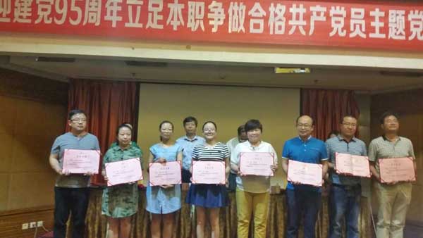 6月29日,中共陕西省归国华侨联合会党委在西安奥罗国际大酒店举办“喜迎建党95周年,立足本职,争做合格党员”的主题活动大会,同时表彰优秀共产党员、优秀党务工作者、先进基层党组织。在本次大会上,华圣果业公司党支部被评选为“省侨联系统先进基层党组织”;华圣果业党支部王晓伟、李力强、王超、黄璟同志被评选为“优秀共产动员”称号。这是我公司党支部及党员在“两学一做”“创先争优”教育活动中取得的优异成绩。