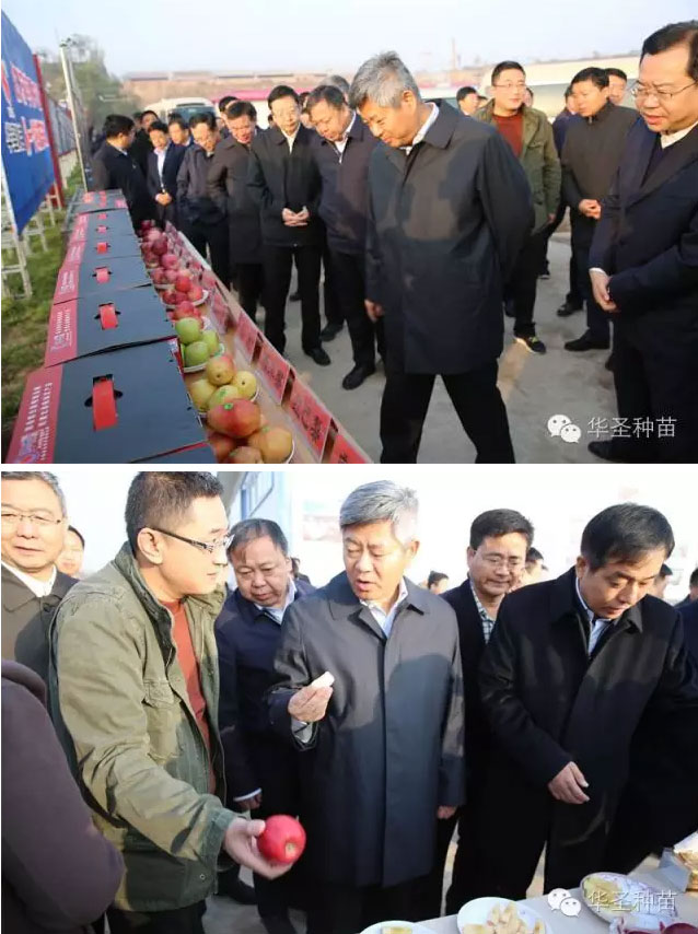 参观过程中,徐书记对我司在矮化自根砧苹果栽培模式上和苹果新品种的推广工作上取得的成绩给予高度评价,希望公司不断发展壮大,在果品行业中永远竖起“华圣”这个标杆,在苹果产业转型升级中发挥更大作用。