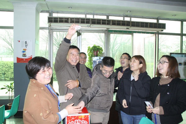 餐厅师傅们提前20天制作各种各样口味的水饺。为了活跃现场气氛,在就餐大厅同时开展了幸运大抽奖活动。抽到奖品的幸运员工们一个个手捧奖品,兴高采烈。